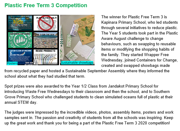 Plastic Free Term 3 Competition – Kapinara Wins!!!