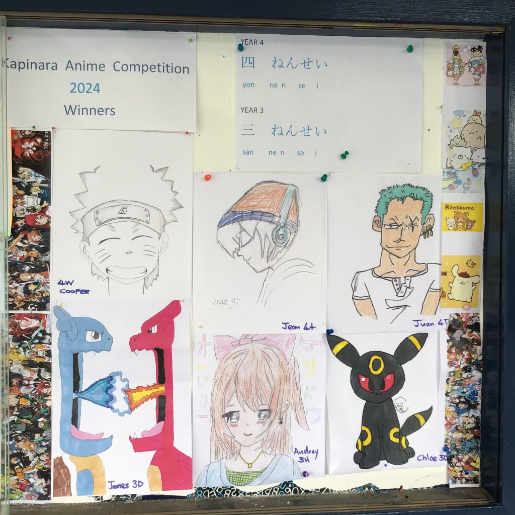 An animation drawing competition was also running during this time with winners announced at the end of Week 2. There were so many incredible entries from all year levels. After much deliberation the judges chose the best 3 entries from each year level. Copies of the winner’s anime are on display on the pinup board in the main quadrangle.