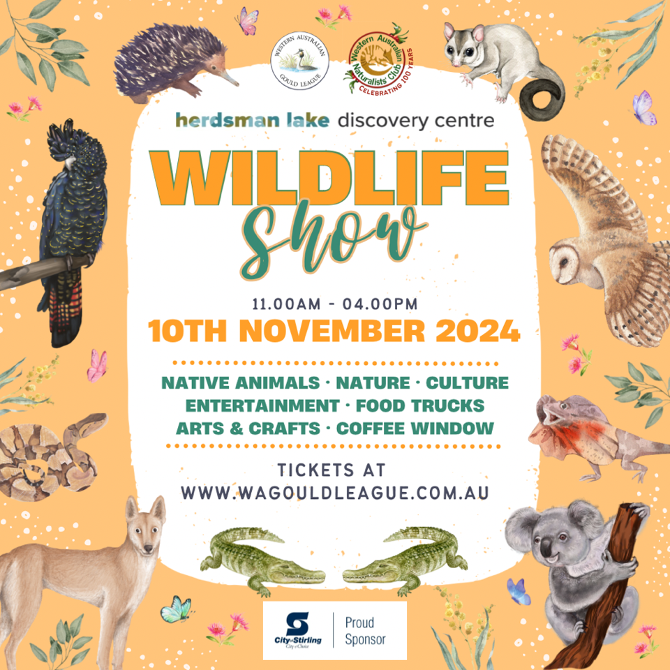 The WA Gould League and the WA Naturalists’ Club will be hosting our signature Wildlife Show at the Herdsman Lake Discovery Centre.