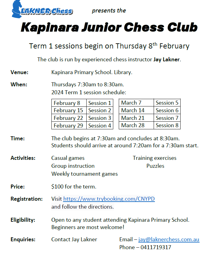NEW!! Before school Chess Club!
