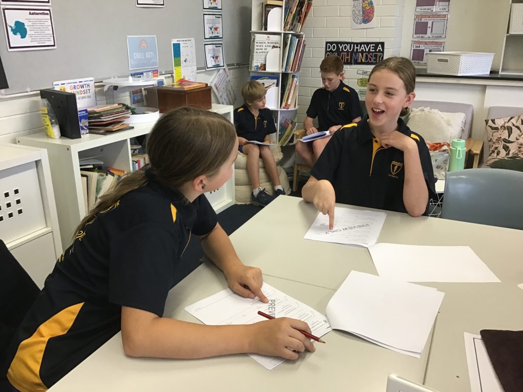 The student leadership team are an important part of our school. They are now speaking each morning providing daily announcements of important notices, recognising people’s birthdays, and highlighting important behaviours for students to focus on. The Leaders want to make Kapinara a great place to be, and are researching what are the needs and wants of the students. Below you can see them working on a Student Opinion Survey to get information on the student experiences in the school. All students in Years 3-6 will complete the survey and the leaders will analyse the results and plan to address the issues that arise.