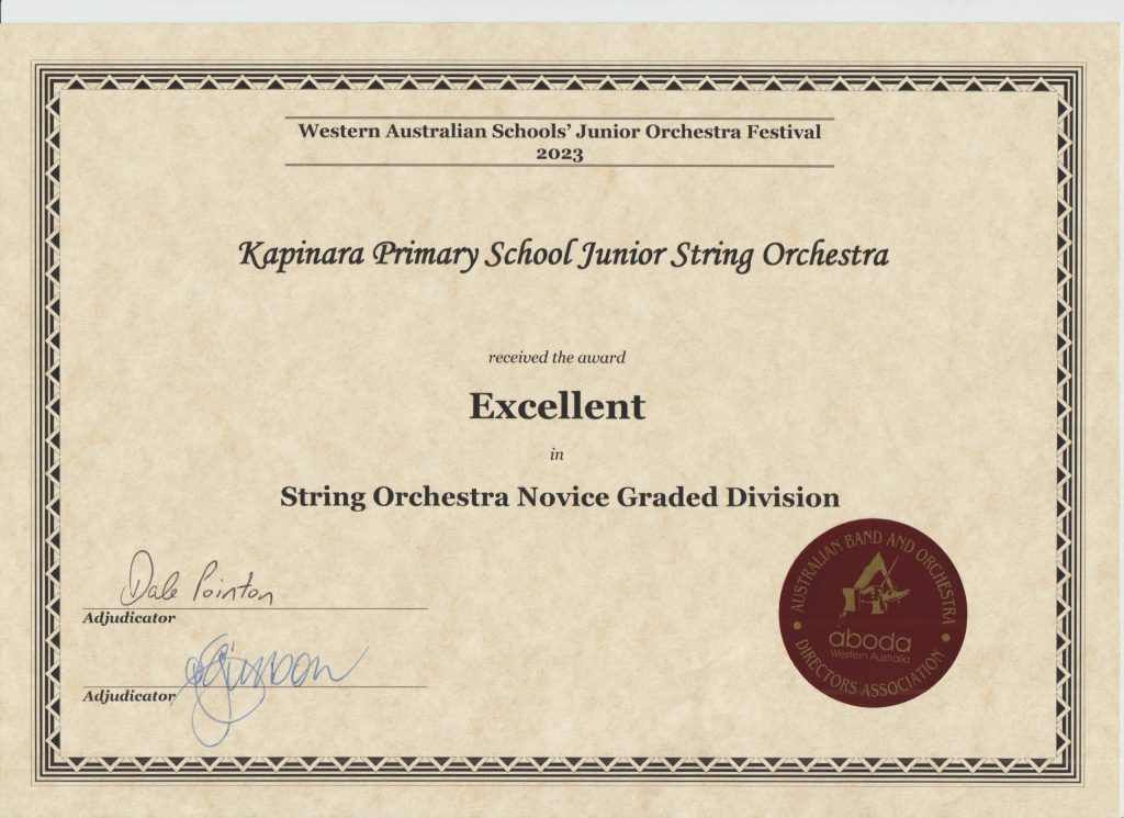 Our Kapinara Orchestra performed beautifully at Sunday’s festival. They received a well-deserved result of ‘EXCELLENT’ for their performance. Congratulations!! Well done musicians and special thanks to our Strings Ensemble Director, Ms Therése Arnold.