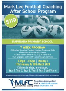 Soccer will be offered at Kapinara on Monday afternoons from 17th Feb.