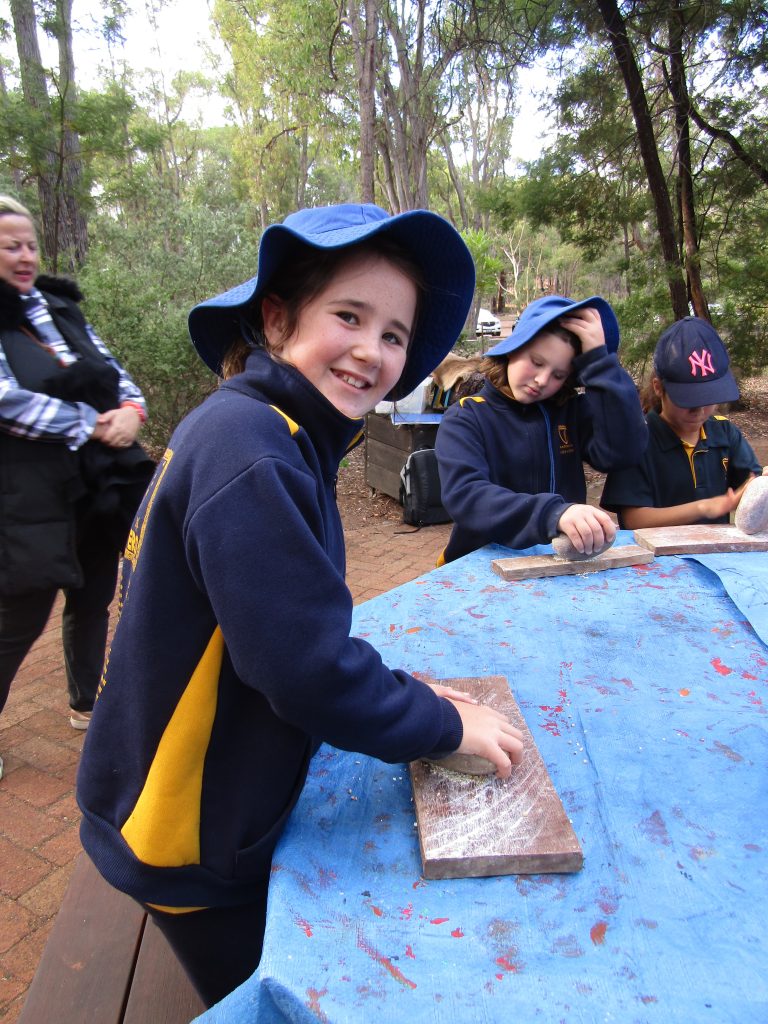 On our Day Camp we grew our leadership skills of perspective and active listening as we learned about Aboriginal culture and how to fish and hunt. We tried some bush tucker such as damper and kangaroo. There was so much knowledge and understanding of the land and animals that we never realised, like the Aboriginal people adapted themselves, not the environment. We also did lots of other activities like grinding grain, painting our faces with a totem animal and making fire. Lots of parents came to help us with our barbeque and then we did a night walk through the forest to look for native animals – so many spiders and possums! All our learning was done outside surrounded by beautiful native trees and bushes. At the end of the day, our most prized possessions are our memories of the great time and learning we had at the Perth Hills Discovery Centre.